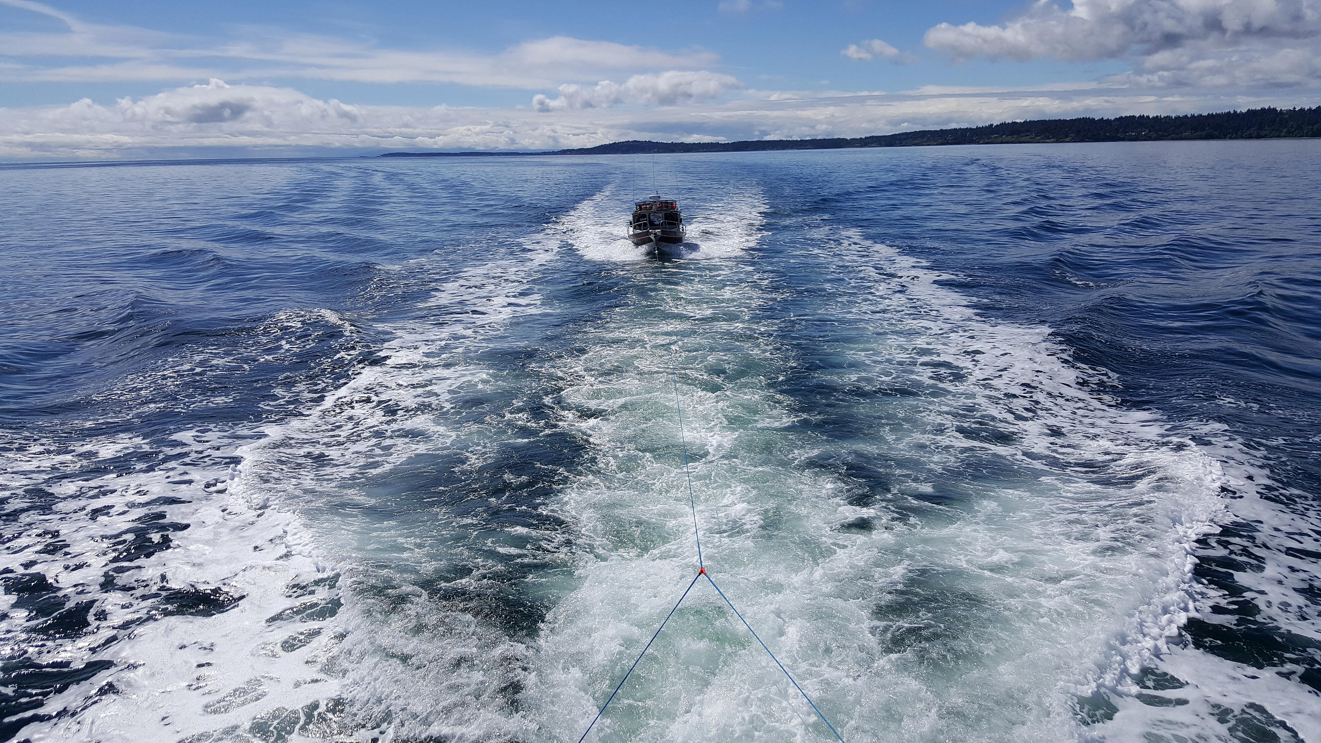 ![]() SeaNile in tow, note the new 3/8" Amsteel 19,000# tow line. |