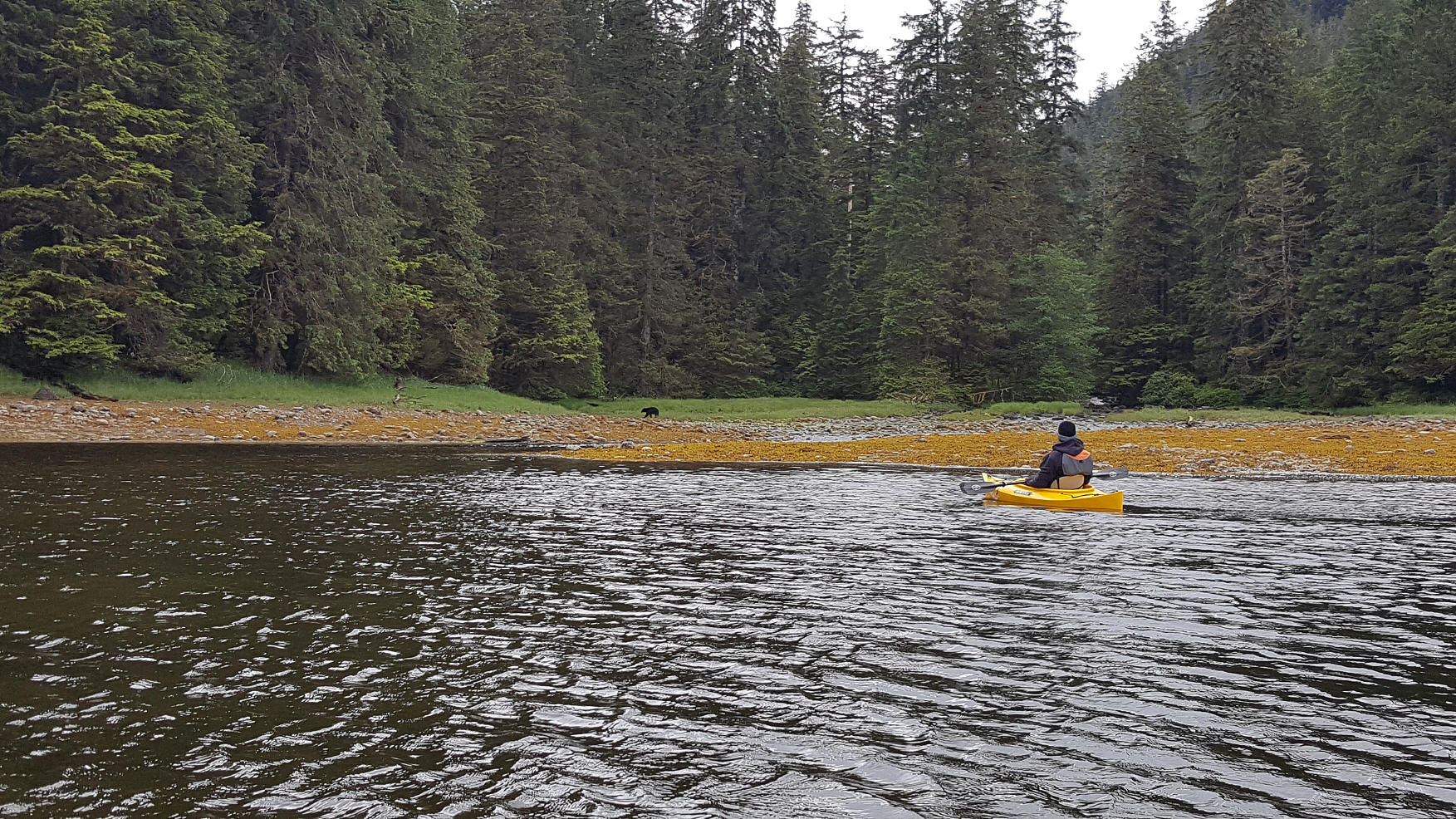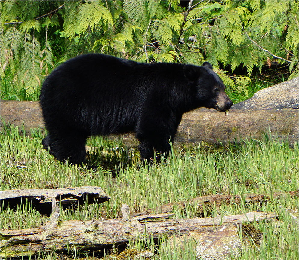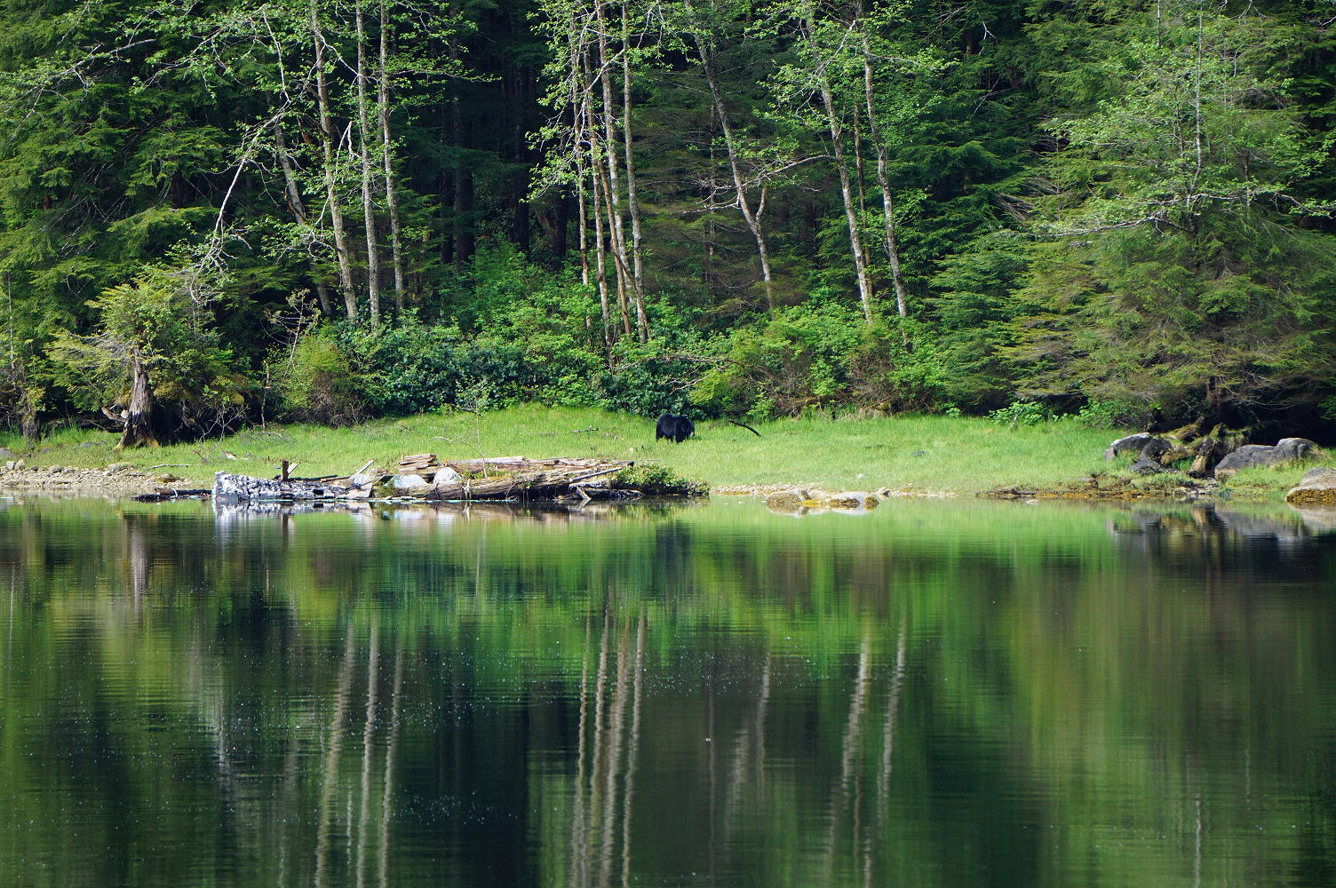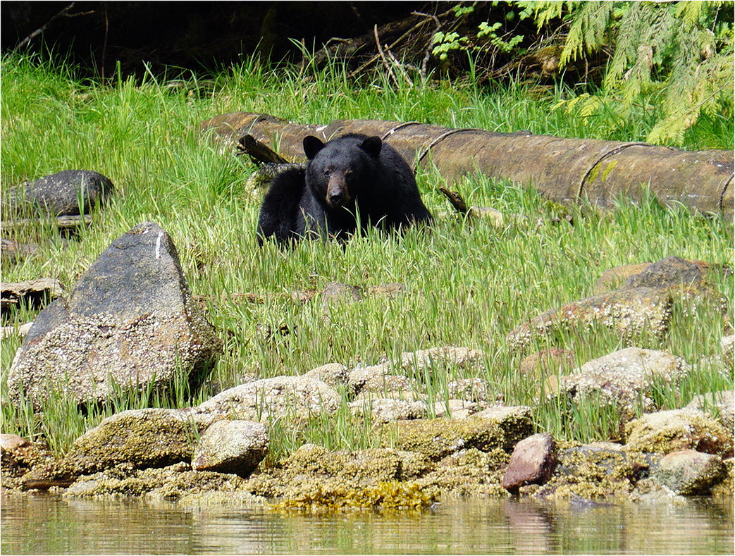 ![]() Kwatsi Bay shore line guarded by an enormous Black bear. |