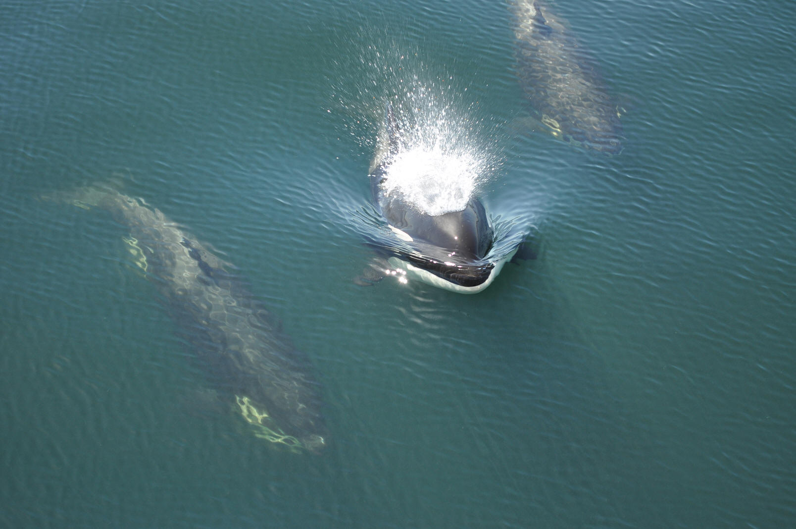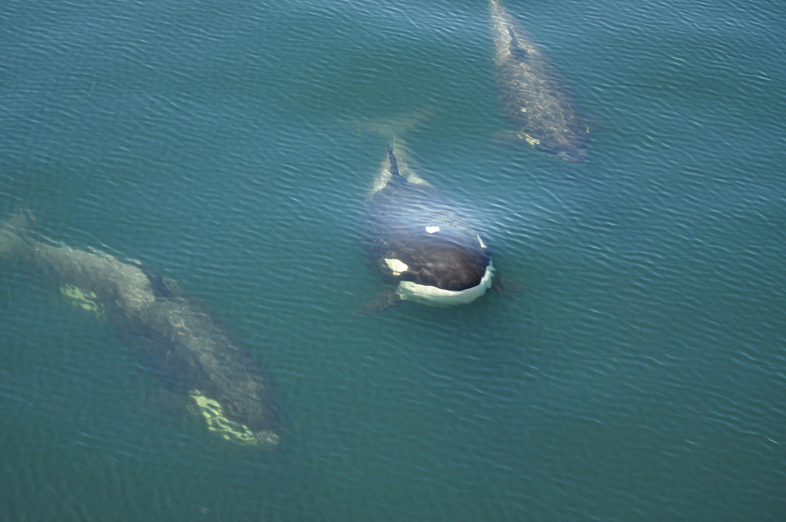 ![]() Orcas swimming under the Bella on the way to Nanaimo! A brand new baby with mom below. |